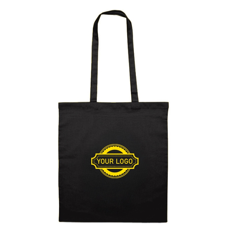 Czarna torba z bawełny 140gr/m², z długimi uchwytami. Torba idealnie nadaje się na codzienne zakupy lub na prezent. Długie uchwyty ułatwiają noszenie jej na ramieniu. Wymiar: 38X42 CM